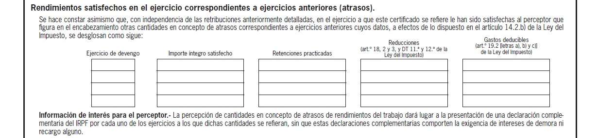 Si quedan cantidades por pagar al trabajador (atrasos) y los paga en años sucesivos se incluirán aquí.
